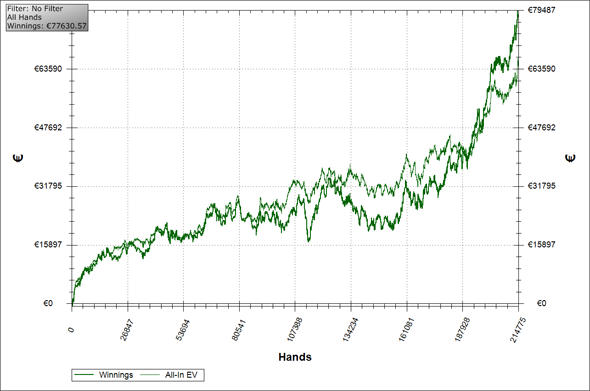 A proposito di MTT, fino al mese scorso sono stati il mio Main Game. Questo mese invece ho deciso di buttarmi principalmente sul Cash Game aggiungendo alcuni MTT, in particolare i domenicali. Ho voluto fare una prova, dato che teoricamente il guadagno orario al NL400+ è più alto di quello degli MTT, sarebbe stupido non giocare Cash, sempre che io sia in grado di mantenere un buon winrate. E comunque gli MTT più importanti posso comunque farli, mantenendo un buon ROI atteso. I guadagni del Cash Game mi aiutano anche ad attenuare la varianza overall, dato che con un atteso di 3-4K mensili, negli MTT può capitare che uno faccia +10K o -5K…