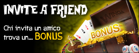 Winga Poker ha deciso di premiare te e i tuoi amici con la promozione “Invite a friend”: fino al 18 dicembre, infatti, riceverai ben 20€ di bonus per ogni tuo amico che si registrerà su Winga Poker, fino ad un massimo di 3 amici invitati. Al tuo amico invitato invece spetteranno 10€ oltre al “welcome bonus”.