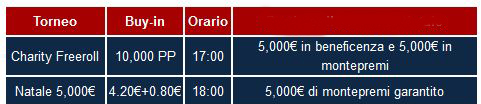 La promozione non è finita qui: infatti NetBet organizza altri due tornei speciali il giorno di Natale, Domenica 25 Dicembre, con due montepremi garantiti da 5.000 € e la possibilità di fare beneficienza attraverso i Punti Premio!