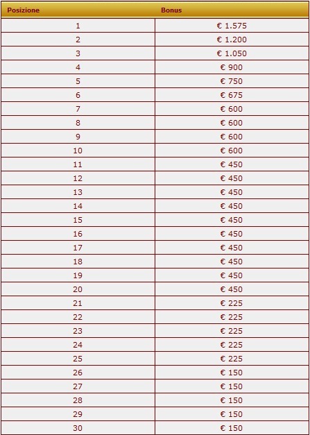 - le classifiche premieranno i primi 30 migliori classificati di ogni singola settimana;