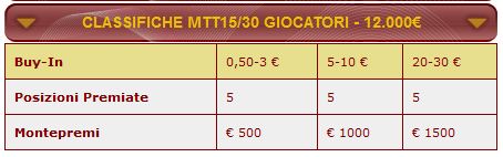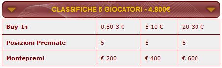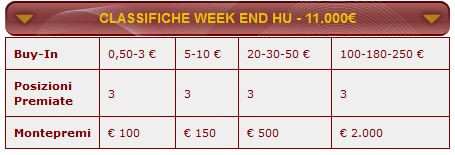 Chiunque andrà a premio in una di queste tipologie di torneo otterrà punti per la corrispondente classifica. Inoltre durante i fine settimana saranno attive le classifiche per gli Heads Up, con un montepremi totale di ben 11.000 €!