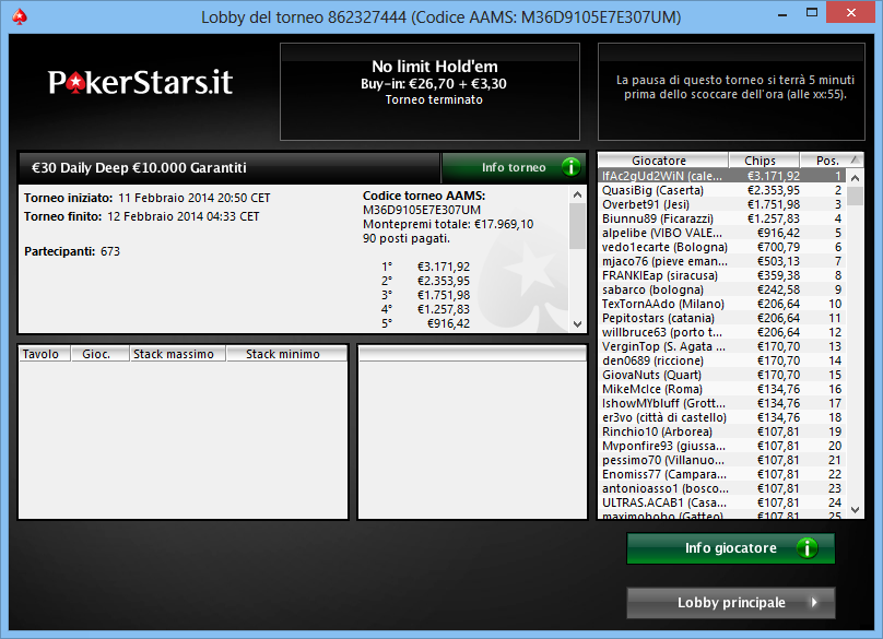 In genere i top regular mtt stampano i soldi nel weekend, ma come ha dimostrato ieri sera il forte player di Calenzano anche qui ci sono eccezioni che confermano la regola.