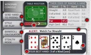 Poker Wingman è un software per il poker online dedicato ai giocatori principianti e rappresenta uno strumento molto valido per apprendere le nozioni di base relativamente alle probabilità e alle azioni da intraprendere al tavolo. Essenzialmente questo software è un calcolatore di probabilità in tempo reale, ma a questo affianca la possibilità di un’analisi della mani degli avversari e una serie di consigli su come giocare la mano.