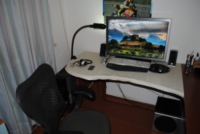 Doveroso punto di partenza potrebbe essere uno dei fattori più trascurati delle postazioni da PC: la scrivania. Sebbene sia necessariamente da porre in correlazione con lo spazio di cui disponiamo nella stanza, è buona norma ricordare che più è esteso il piano, meglio è, ma soprattutto, fondamentale il fatto che vi sia posto per la gambe al di sotto.