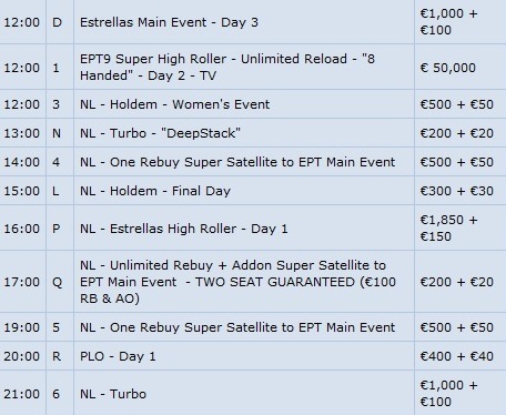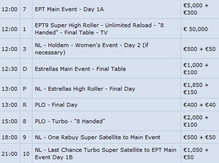 Qui di seguito il ricco programma dell’EPT di Barcellona: