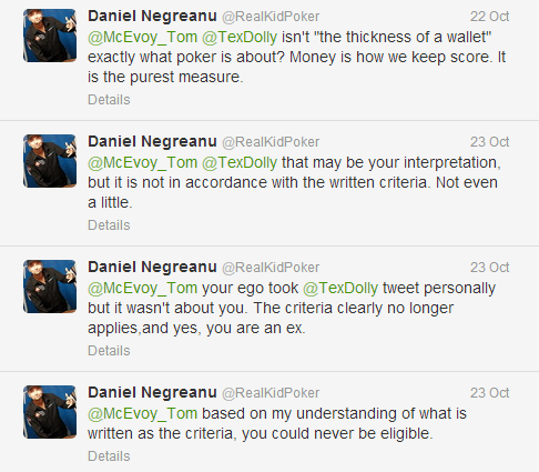 Se c’era uno che non sarebbe stato mai zitto in una situazione del genere, quello era sicuramente Daniel Negreanu, che ha risposto non solo a Doyle ma soprattutto a McEvoy, che ha accusato, fra le altre cose, di non essere più un giocatore di poker. “You’re an ex“, gli ha detto Daniel.