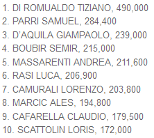 Seppur non presente nella top 10 di questo Day 1B, buonissima la prestazione di Paolino Virciglio, attualmente al 13° posto con 163.100.