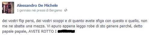 Il primo gennaio, come se si volesse liberare di un peso, è comparso un post sul profilo Facebook di De Michele che ha attirato parecchia curiosità, soprattutto per il tono molto deciso delle affermazioni.