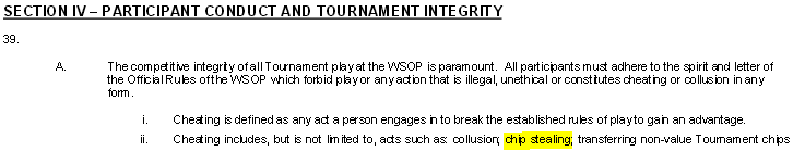 Regola 39 del regolamento WSOP