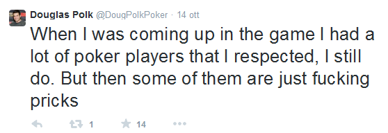 Che tradotto fa più o meno così: “Quando sono arrivato nel poker c’erano molti giocatori che rispettavo e che ancora rispetto. Poi però alcuni di loro si sono rivelati dei fottuti cazzoni”.