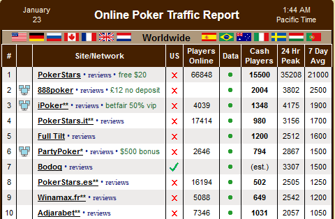 In testa, irraggiungibile per tutti, c’è PokerStars.com con la sua media di 21.000 player. Un vero e proprio dominio incontrastato, se si pensa che il secondo posto è occupato dal network ‘888poker’ con 2.500 come average quotidiana.