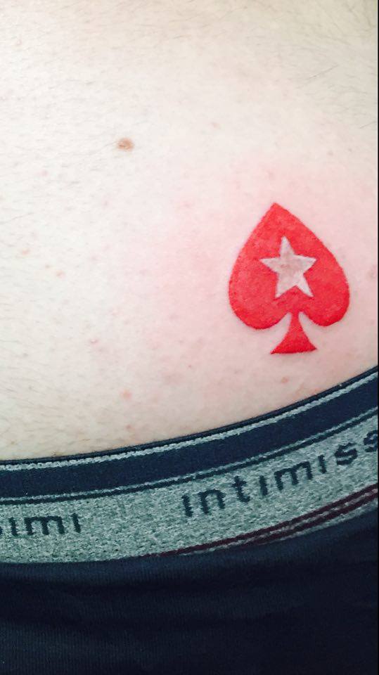 “Penso di non essere l unico ad avere tatuata la picca di PokerStars, ma credo di essere l unico ad averla tatuata sul culo! Magari come ti ho detto verrà lanciata una moda: chi shippa si tatua la picca! Infatti sfido il prossimo vincitore del Sunday Special a farlo, anzi mi piacerebbe sapere cosa farebbero i ragazzi che leggono se dovessero shippare.. Comunque prendo questa picca come un punto di partenza che spero mi porti tanta fortuna: su PokerStars ormai ho shippato praticamente tutto, ma non sarebbe male se questo mio nuovo ‘amuleto’ funzionasse nei live! In alternativa potrebbe andare bene anche una sponsorizzazione, o una seria proposta di stacking…”
