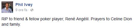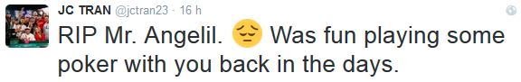 Hanno scritto un messaggio di cordoglio per la sua scomparsa, tra gli altri, Phil Ivey, JC Tran e Barry Greenstein.