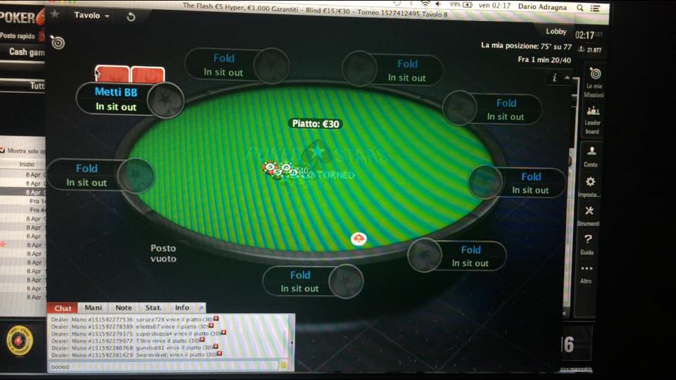 Come ci hanno raccontato alcuni regular – tra questi Andrea ‘ANDREXSORRE’ Sorrentino – la problematica non ha colpito tutti i partecipanti, tanto che chi non è stato toccato da questa ‘disgrazia’ ne ha approfittato e non poco, conquistando agilmente le chips degli avversari inabili ad agire.