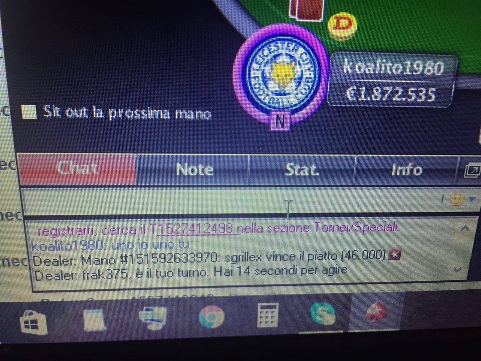 Gianluca ‘Gianlucasp92’ Angeloni ha catturato una chat di un altro torneo, dove 40 dei 42 rimanenti sono finiti in sit-out. ‘Koalito80’ – anche in modo ingenuo – dice all’altro di prendere un po’ di chips per uno, evitando lo scontro tra di loro.