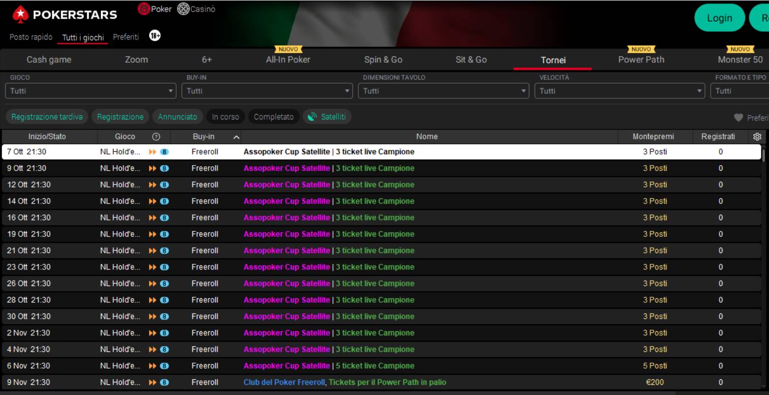Una volta fatto, se avrai interesse nel partecipare a questo torneo ecco che oltre alla canonica possibilità di pagare il buyin al Casinò durante l’evento, PokerStars e Sisal ti offriranno una possibilità in più, completamente gratuita tra l’altro: vincere un Ticket tramite i Freeroll dedicati.