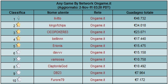 Anche questa settimana andiamo a scoprire chi sono i giocatori più vincenti delle poker room italiane nelle categorie SNG e MTT. Prima però andiamo a valutare chi sono i migliori in assoluto.