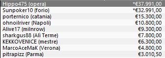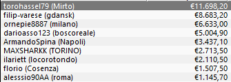Sul terzo gradino del podio si piazza, invece, il catanese “porternico” capace, dunque, di far lievitare il proprio bankroll di 15.300€ tondi tondi.