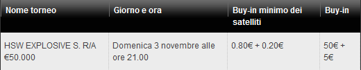 Se stasera non ti rapiranno le streghe, non avrai alcuna scusa: dovrai segnare nella tua schedule del weekend pokeristico il torneo di Titanbet ‘HSW Explosive Sunday’ che, eccezionalmente, manterrà, per domenica 3 novembre, il montepremi garantito di 50.000€ pur avendo il buy-in dimezzato, ovvero di soli 50€.