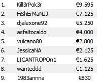 All’Explosive DC vince invece “Kill3rPok3r”, che fa suoi i 9.595€ che accompagnavano la prima posizione. Si sono fatti vedere pochi poker pro e possiamo solo segnalare la bandierina piazzata da Davide “DJdaveEN” Nutarelli, 16° per 450€. Ecco il payout del Final Table: