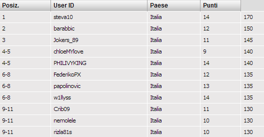 Questo, unito alla serata in bianco di “barabbic” e “Jokers_89” (terzo nella leaderboard), ha consentito a Luca di prendere un vantaggio di 20 punti che lo mette in una posizione privilegiata nel momento in cui restano solo sei tornei da disputare.