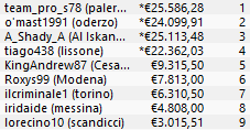 Sul terzo gradino del podio si accomoda, con un premio di 6.949,80€, il campano ‘coinflip21’.