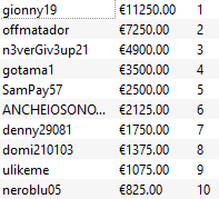 Vince il torneo ‘gionny19’, che in heads-up batte ‘offmatador’ senza necessità di un deal. 11.750€ per il vincitore e 7.250€ per il runner-up in un emozionante duello con ben 4.500€ sul tavolo. Questo il payout del Final Table:
