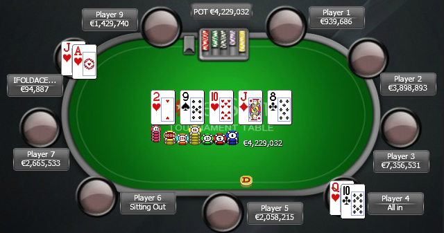 Questo lo showdown (all-in al flop) che ha eliminato il campione IPT: