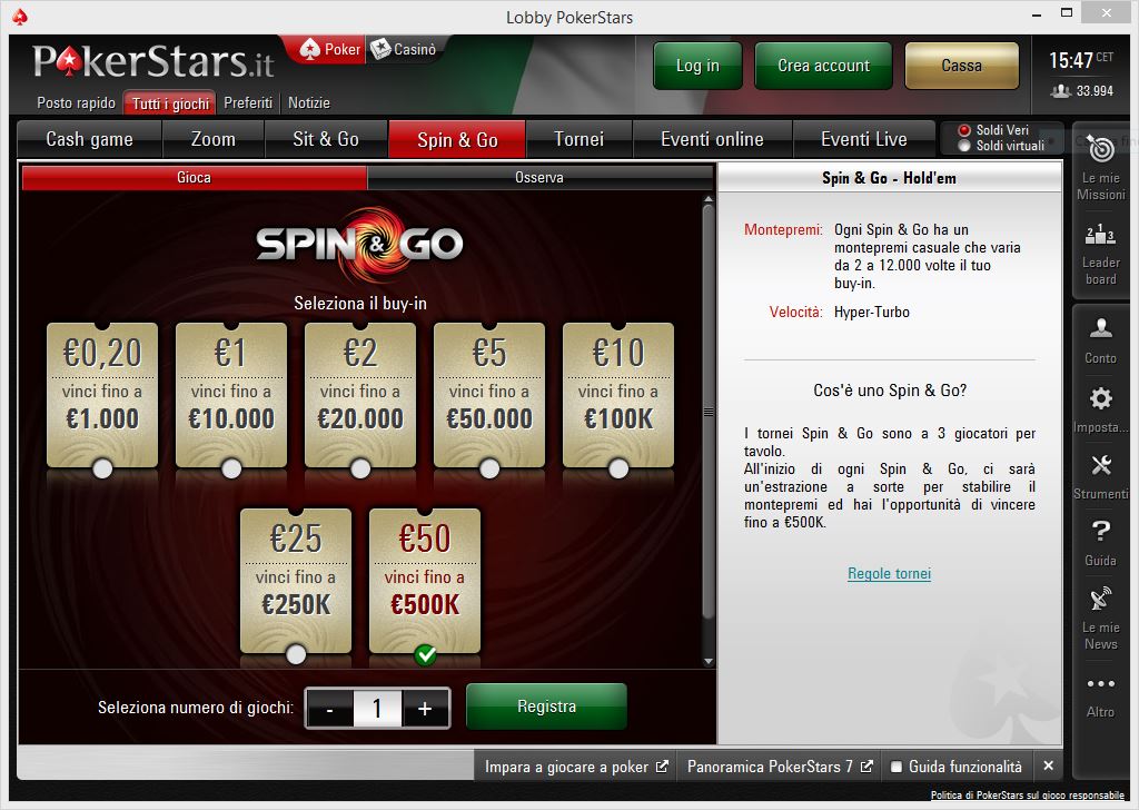 Iscriviti a PokerStars e schierati agli Spin&Go!
