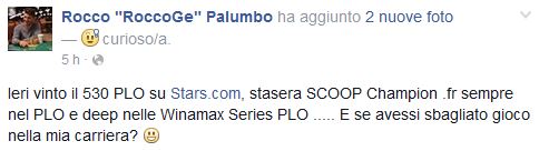 A parte gli scherzi, Rocco Palumbo l’ha combinata grossa in questi giorni a pot limit omaha, dimostrando come ci sappia fare anche con quattro carte in mano e non solo con due.