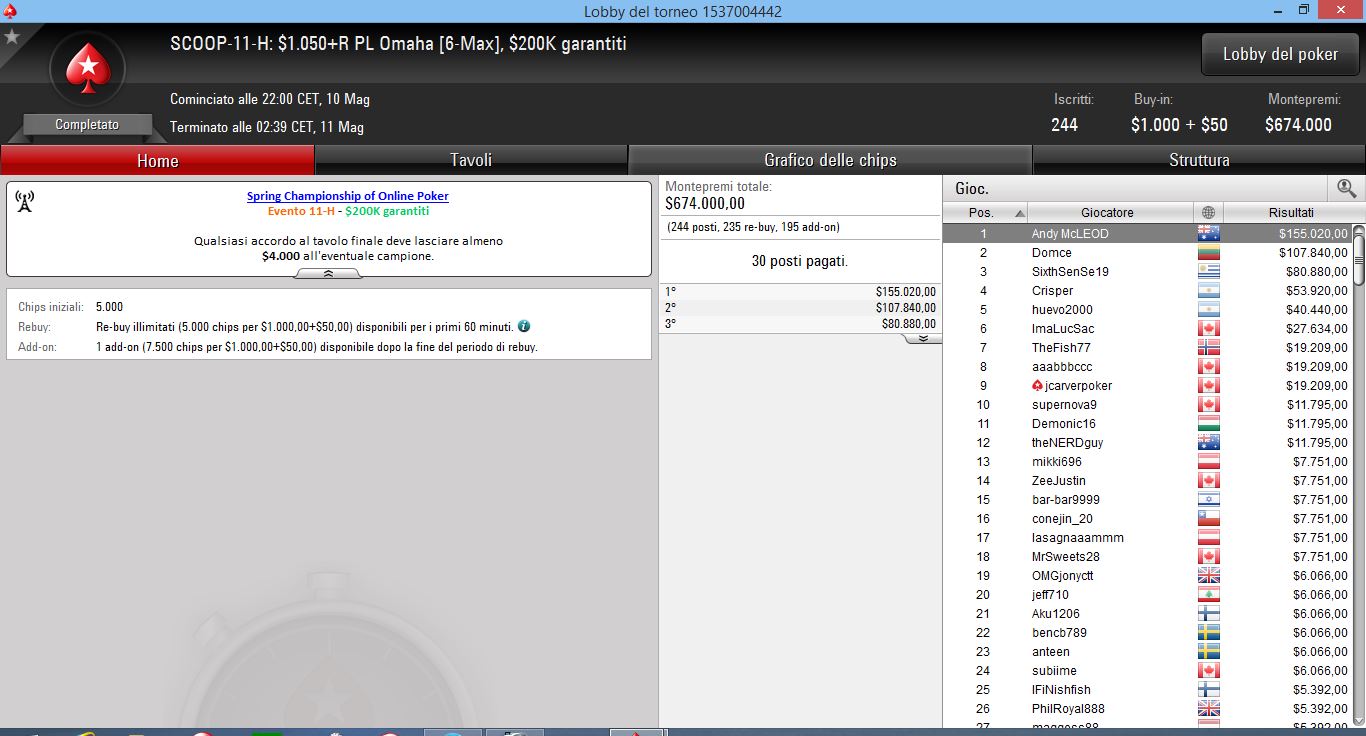Una ventina di giorni fa l’australiano James ‘Andy McLEOD’ Obst ha vinto il titolo SCOOP del PLO 6-max rebuy da 1.050 dollari di buy-in, successo che ha portato nelle sue casse – oltre al quarto orologio in carriera – 155.020 dollari.
