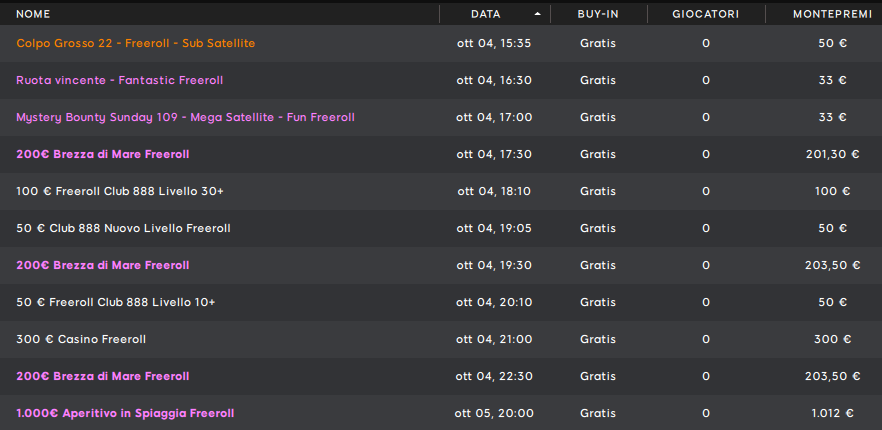 Se volete saperne di più, cliccate sul nostro calendario dei free aggiornato quotidianamente. C’è poi anche il calendario dei nostri tornei freeroll esclusivi e regolari. Buon divertimento e buona fortuna a tutti!