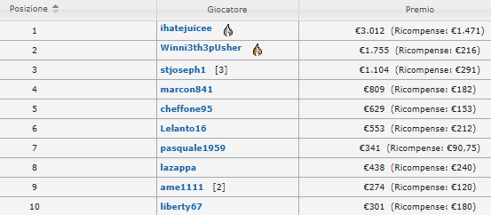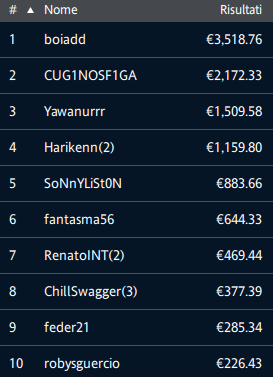 50.000€ Explosive Sunday (buy-in 100, montepremi 52.689, iscritti 579)