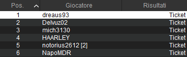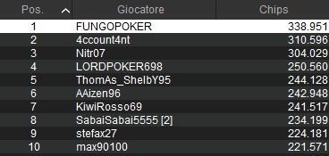 Citiamo anche questa bella FINALE iniziata alle 20:00 che ha fatto felici 306 persone. Sono stati qua 278 i rientri tra le altre cose. Al vincitore ‘dreaus93‘ è andato un favoloso Gold Pass dal valore di 9.300 euro! I giocatori dietro di lui (fino alla sesta posizione) hanno preso invece un Silver Pass da 2.300 euro. Agli altri ITM il Sunday Million da 250 euro.