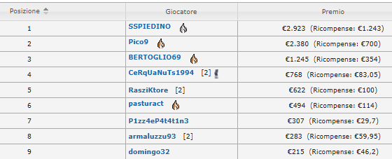 8.000 € Daily Gems – Colpo Grosso 109 (montepremi 10.593, iscritti 107)