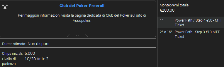 Domenica alle ore 21:30 su PS.it si gioca un Club del Poker Freeroll con 200 euro regalati. Per tutti 5mila chips di partenza e bui iniziali 10/20. I primi 16 vanno a premio.