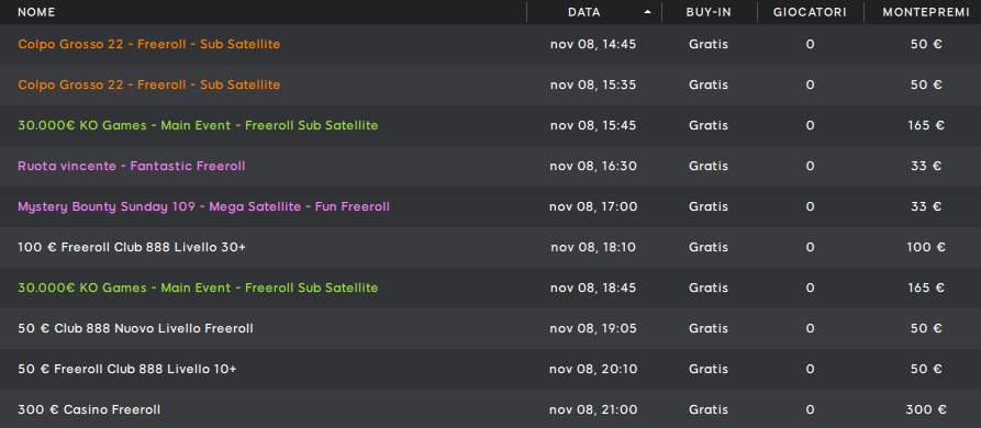 Le poker room italiane continuano a proporci ogni giorno tornei gratuiti con bei premi in palio. Andiamo allora a farci un giro nelle varie lobby del ‘punto it’ per capire quali sono i migliori freeroll in palinsesto in questo weekend festivo di novembre.