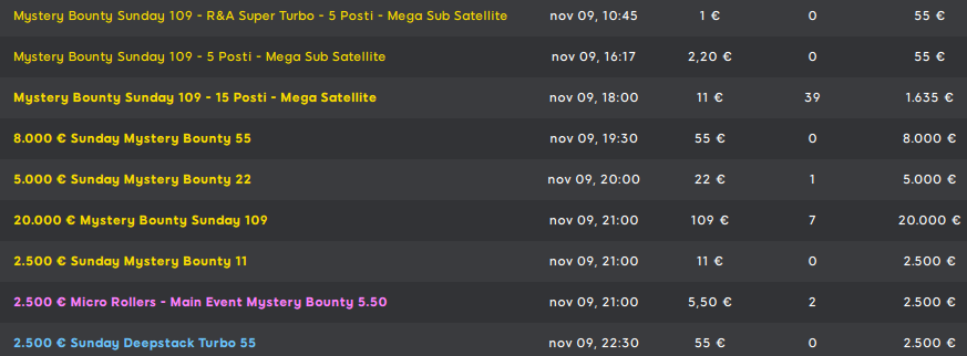 Anche nel mese di novembre c’è da divertirsi online. Siete pronti, allora, per scoprire il programma completo di questa odierna giornata per quanto riguarda i tornei italiani?