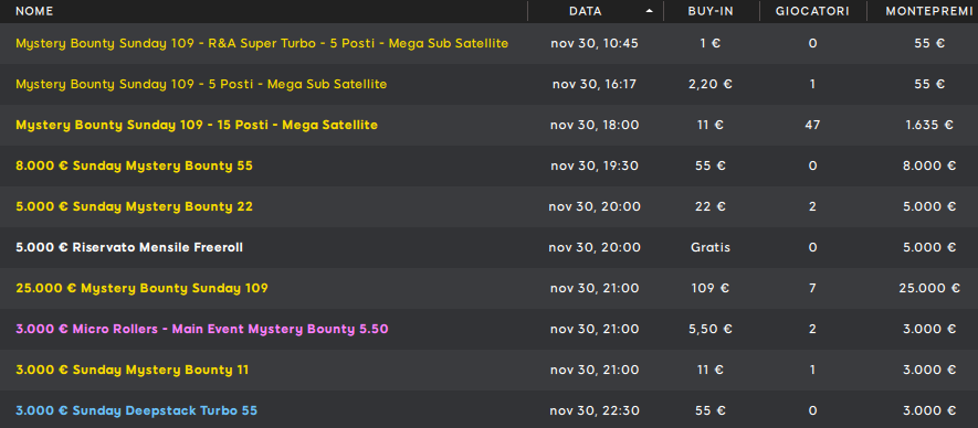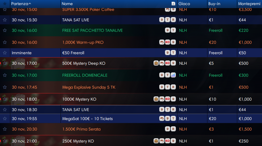 Anche a fine novembre c’è da divertirsi online. Siete pronti, allora, per scoprire il programma completo di questa odierna giornata per quanto riguarda i tornei italiani?