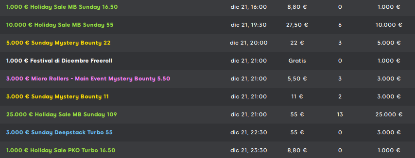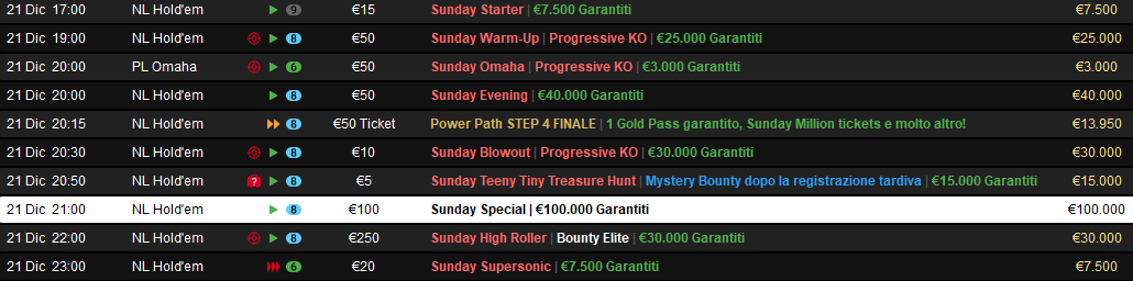 Nelle room PokerStars e Sisal si continua a far sul serio, magari con la voglia di farsi un bel regalo di Natale. Allora spazio al Sunday Special e altri appuntamenti dal sapore classico.