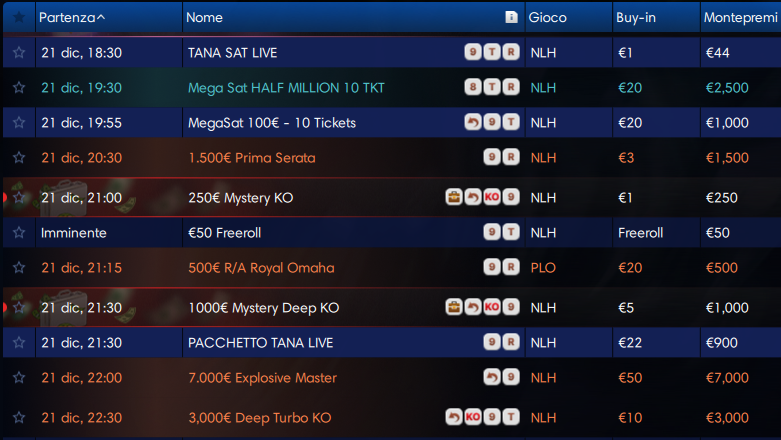 Ma consultate pure il resto del programma domenicale… Buona fortuna! Per giocare nei tornei di iPoker, il requisito è avere un conto aperto per esempio su una di queste rooms: Snai, Bet365, Lottomatica, Goldbet o Eurobet.