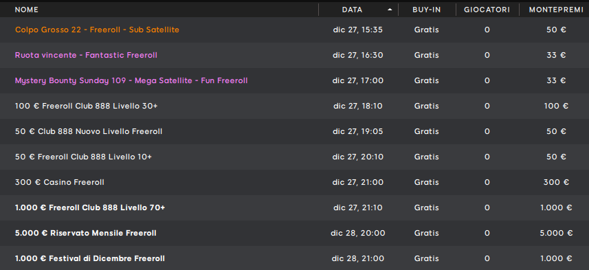 Se volete saperne di più, cliccate sul nostro calendario dei free aggiornato quotidianamente. C’è poi anche il calendario dei nostri tornei freeroll esclusivi e regolari. Buon divertimento e buona fortuna a tutti!