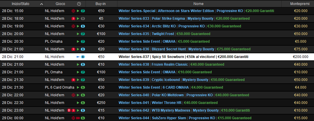 Nelle room PokerStars e Sisal si continua a far sul serio, magari con la voglia di farsi un bel regalo di fine 2025. Allora spazio alle Winter Series con ottimi garantiti.