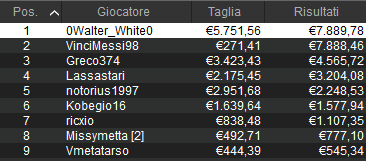 Qui un nickname già noto ai nostri lettori ha trionfato nell’evento principale. Infatti ‘0Walter_White0’ ha preso oltre 13.600 euro, due settimane dopo il suo trionfo nel classico Sunday Special. Che dire? Ha finito il 2025 alla grande e ora non si smentisce…