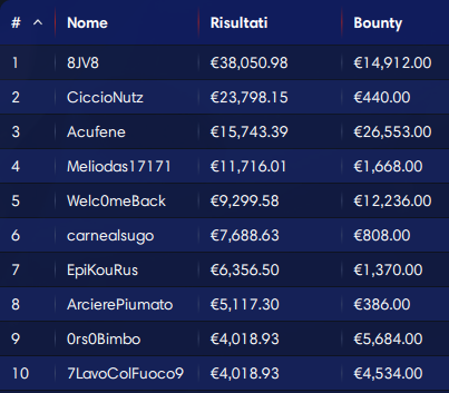 Il sipario è calato definitivamente alle ore 8:11 precisamente quando ‘8JV8‘ si è preso la prima moneta da 38.050 euro e un totale di 52.960 euro circa. Seconda piazza e oltre 20mila euro per ‘CiccioNutz’. Complimenti davvero a tutti i possessori dei nick citati!