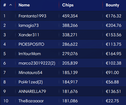 50.000€ Explosive Sunday (buy-in 100, iscritti 452)