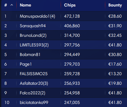 25.000 € Mystery Bounty Sunday 109 (buy-in 109, montepremi 26.235, iscritti 265)