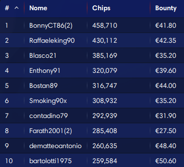 50.000€ Explosive Sunday (buy-in 100, iscritti 420)