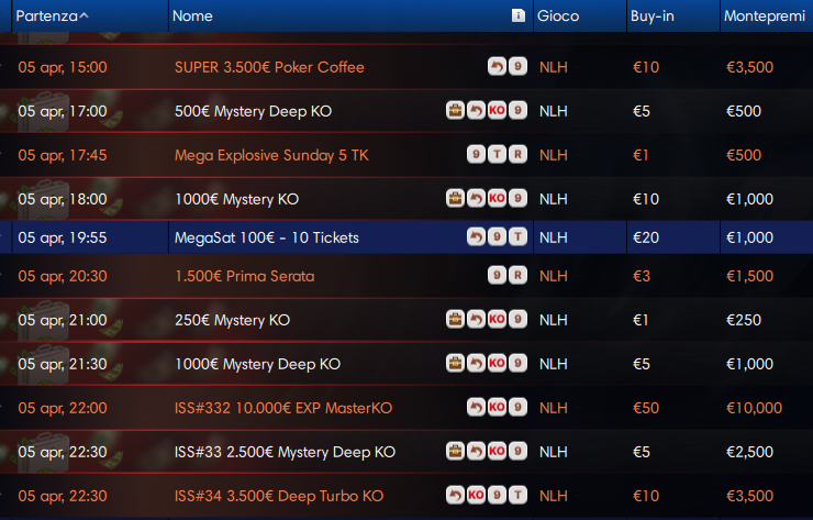 Ma consultate pure il resto del programma domenicale con tutta la serie ISS… Buona fortuna! Per giocare nei tornei di iPoker, il requisito è avere un conto aperto per esempio su una di queste room: SnaiBet365, LottomaticaGoldbet o Eurobet.