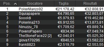 Alle ore 8:25 di stamattina è arrivato il trionfo per un noto regular del sito e dei circuiti live: Manuel Ferrari con il suo nick ‘PokerManzo92‘ si prende una clamorosa taglia da 21.178 euro. In totale fa suoi 53.987 euro.